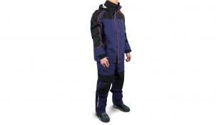Un completo per pioggia e vento esclusivo, pratico, dai contenuti tecnici molto elevati, destinato a durare nel tempo, viste le sue peculiarità. Giaccone e salopette sono interamente realizzati in tessuto traspirante e totalmente impermeabile di ultimo studio e generazione. Questo nuovo materiale, oltre che risultare idrorepellente, garantisce una traspirabilità elevatissima anche da asciutto, pertanto anche il fastidioso inconveniente della sudorazione interna, che