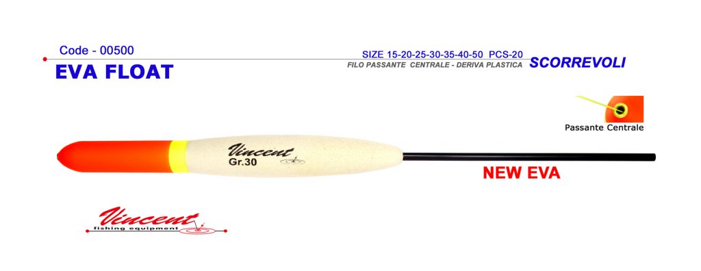 Galleggiante Vincent Eva Float passante centrale , studiato per la pesca dello storione. Disponibile in varie grammature.