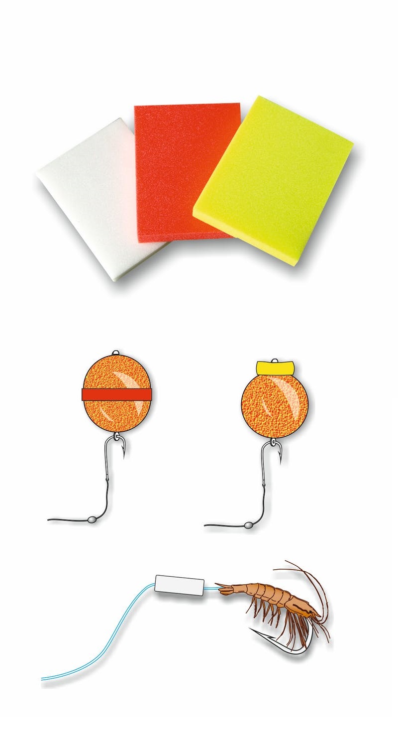 Gomma galleggiante ultraleggera ideale per zatterini e per alleggerire o sollevare dal fondo ogni tipo di esca e renderla così più catturante. Tavoletta di mm 80x60x8. Colori: bianco - rosso - giallo. Busta da 1 pezzo,
